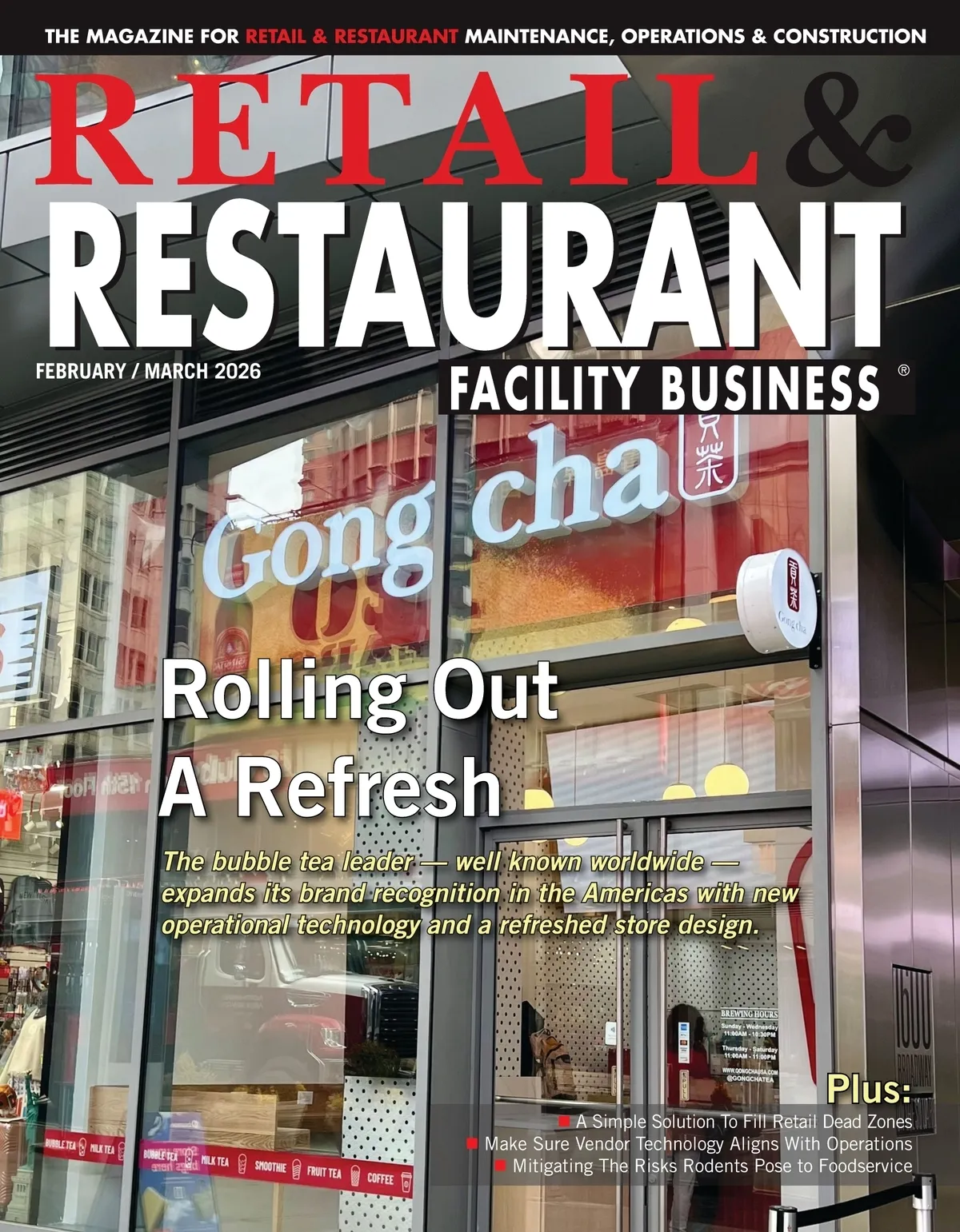 RETAIL & FEBRUARY / MARCH 2026 THE MAGAZINE FOR RETAIL & RESTAURANT MAINTENANCE, OPERATIONS & CONSTRUCTION RESTAURANT FACILITY BUSINESS ® Rolling Out A Refresh The bubble tea leader — well known worldwide — expands its brand recognition in the Americas with new operational technology and a refreshed store design. A Simple Solution To Fill Retail Dead Zones Make Sure Vendor Technology Aligns With Operations Mitigating The Risks Rodents Pose to Foodservice Plus: